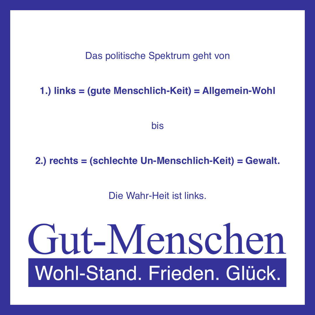 II.) Das Wichtigste der Gut-Menschen-Partei-Politik kurz zusammengefasst zur optimalen inter-subjektiven Nach-Voll-Ziehbar-Keit
